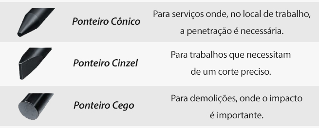 E além do uso de peças originais, o que sempre é essencial para qualquer situação, existe também o formato certo de ponteiro para cada aplicação. Veja a tabela abaixo: