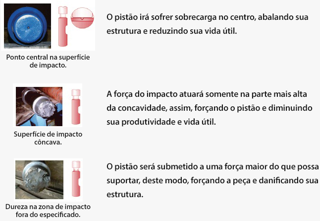 Veja abaixo alguns exemplos de falhas estruturais muito comuns em ponteiros não originais, e os danos que podem provocar no rompedor: