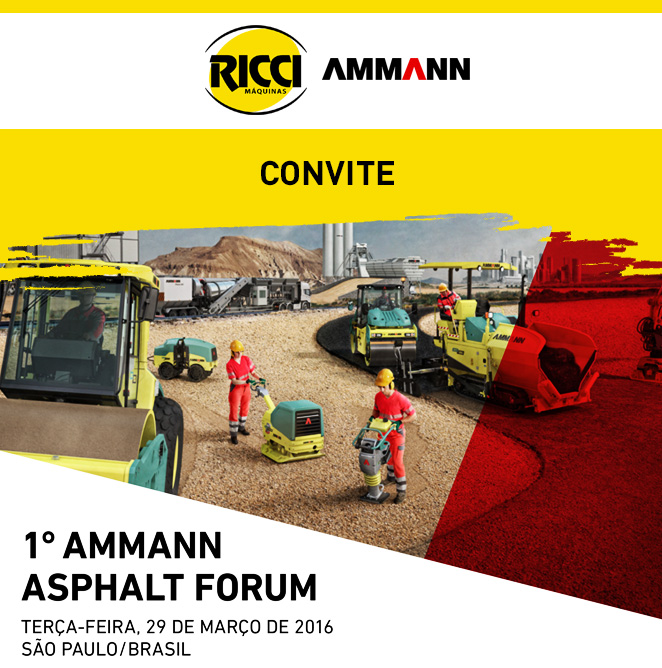 A RICCI MÁQUINAS E A AMMANN DO BRASIL TEM O PRAZER EM CONVIDAR VOCÊ PARA O 1º AMMANN ASPHALT FORUM.