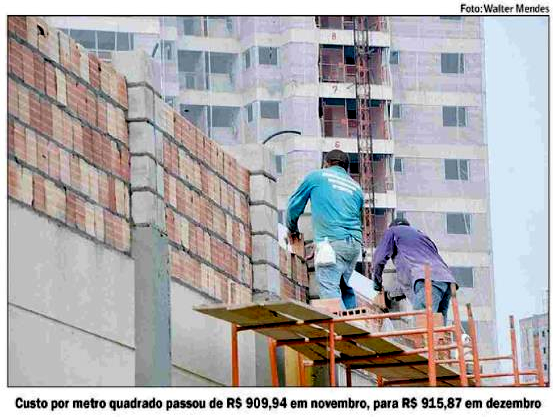 O Sinapi (índice Nacional da Construção Civil) é calculado pelo IBGE (Instituto Brasileiro de Geografia e Estatística) em parceria com a CEF (Caixa Econômica Federal). Os resultados acumulados levam em conta a desoneração da folha de pagamento de empresas do setor da construção civil prevista na lei n& 12.8441 sancionada em 19 de julho de 2013. O custo estadual por metro quadrado passou de RS 909*94 em novembro, para RS 915,87 em dezembro. Sendo RS 528,79 relativos às despesas com materiais de construção e RS 387,08 com a mão de obra, Em relação ao preço é positivo, porém com a demanda reprimida o fator é negativo, revelou o Sinapi no ano passado.
