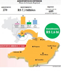 Plano de Aviação Regional. Pelo cronograma, as melhorias dos aeroportos de Caxambu, Ituiutaba, Jaíba, Pirapora, Ponte Nova e Teófilo Otoni devem começar a ser licitadas a partir da segunda quinzena de novembro, com início das obras previsto para fevereiro de 2014.